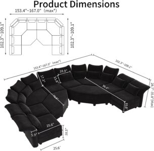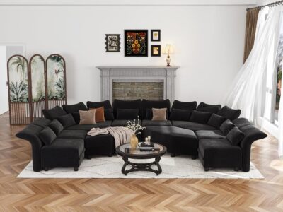 $1,999.00Modular Sectional Sofa Couch with U-Shape Chaise Ottomans, Comfy Plush Corduroy Cloud Couches, Modern Deep Seat Sofas Set for Living Room, 9-Seater, Grey