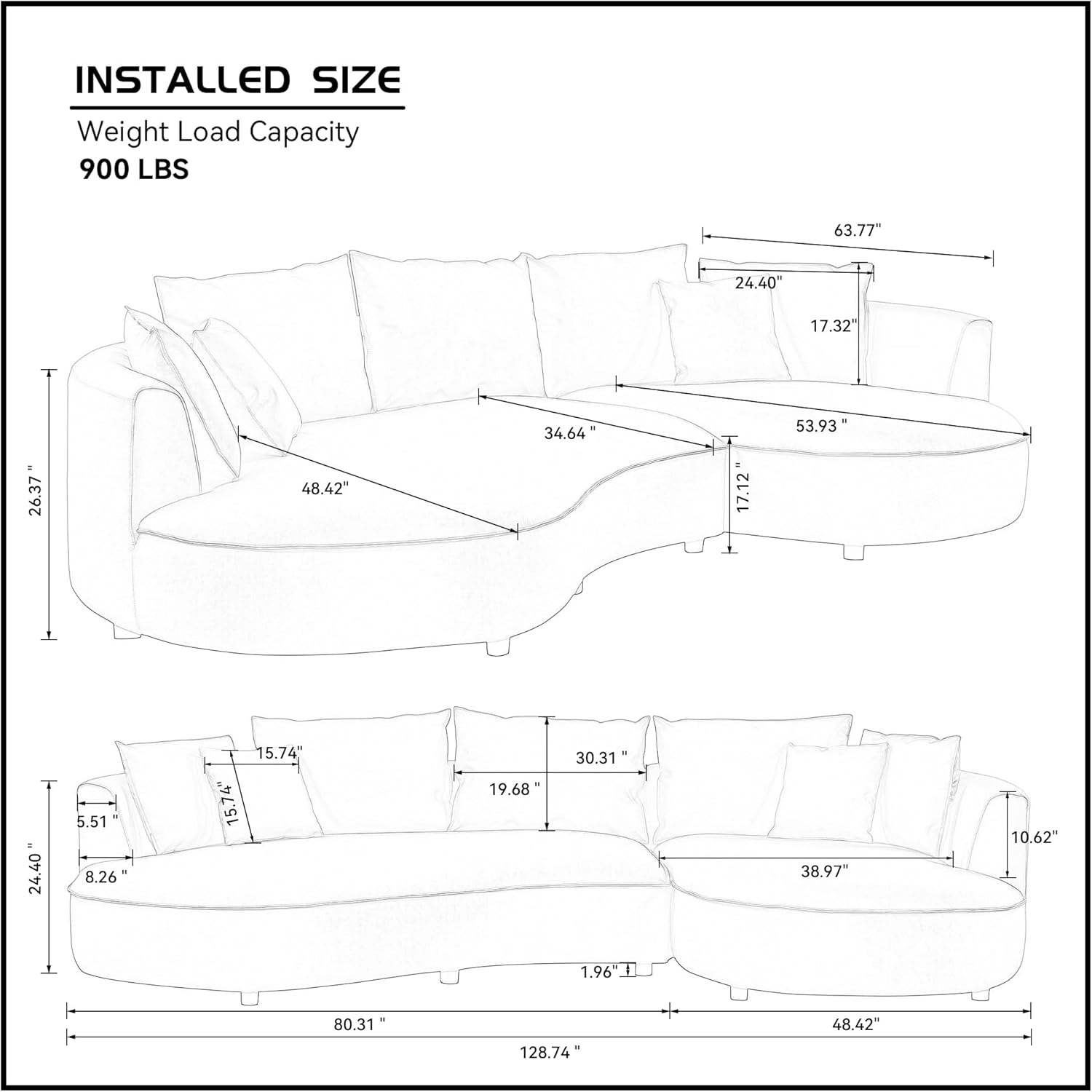 128.74"D x 63.78"W x 26.37"H |