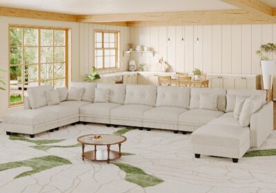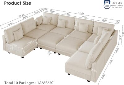 $1,799.99Oversized Modular Sectional Couches for Living Room with Storage | Plush Corduroy, 10-Seater Sofa, 8 Throw Pillows, L/U-Shaped Sleeper, Beige Sofa