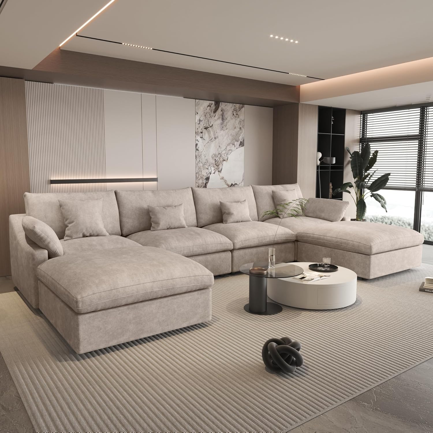 Modular Sectional Sofa for Living Room, Down Filled 160″ U Shaped Couch with Ottoman,Modern 6 Seater Convertible Couches,All Covers Washable&Replaceable