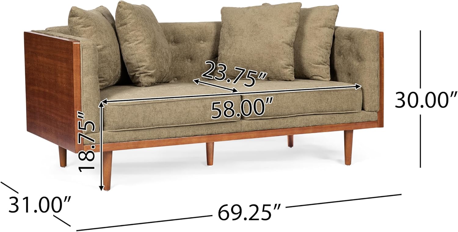 Mid-Century Modern Loveseat Sofa, Couch with Button-Tufted Upholstery, Wood Frame Stylish Retro Design for Living Room Apartment Office, Dark Beige