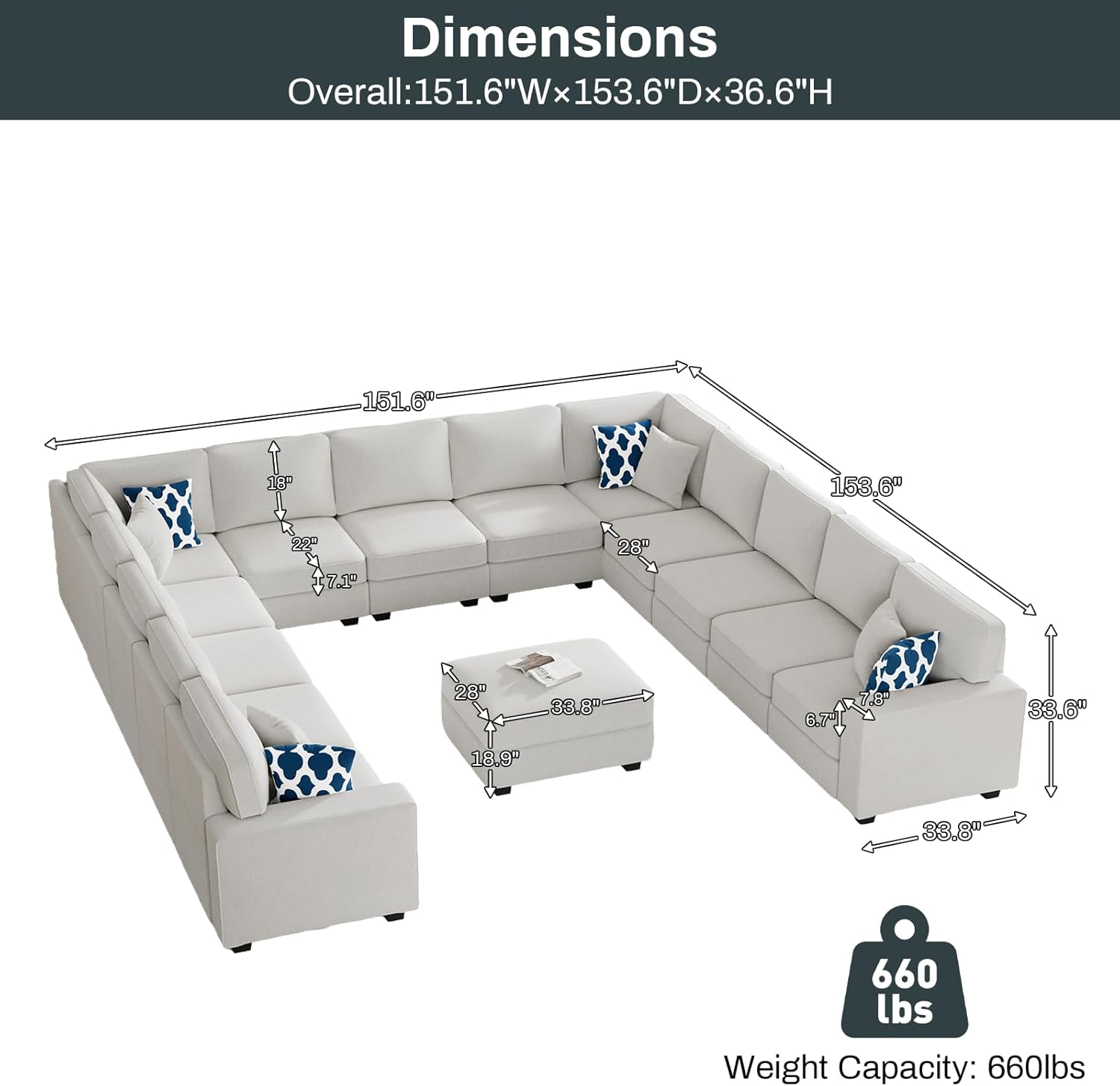 - 【Ergonomic Design】The backrest of the couches for living room perfectly fits the human body curve, the armrests are wide and at the right height, and the living room sofa as a whole is ergonomically designed to give you comfortable support. The modular sectional sofa is paired with multiple multi-functional small pillows, allowing you to relax anytime, anywhere. The oversized couch has a weight capacity of up to 660 pounds to give you stable support.