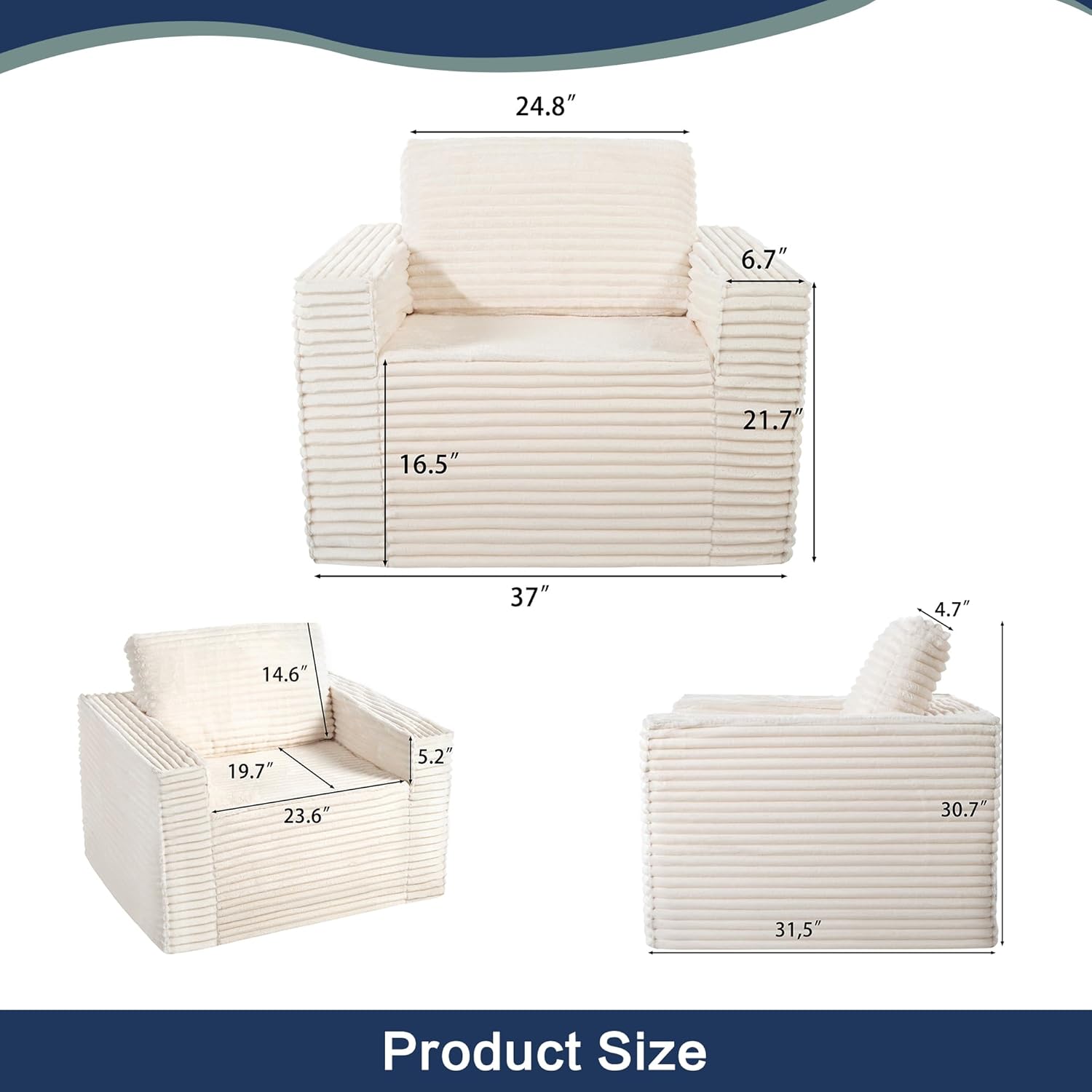 Plush Bean Bag Chair for Adults with Armrests,Bean Bag Sofa Chair with Pillows for Living Room, Bedroom,Dorm (Beige)