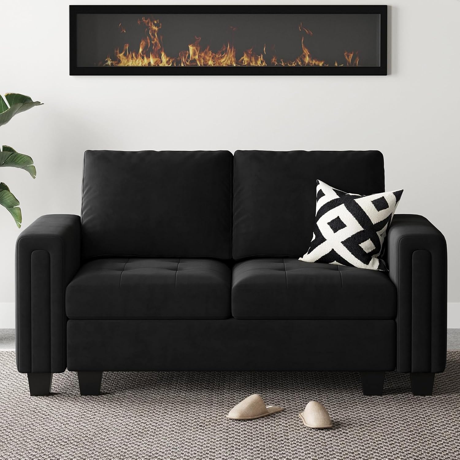 Velvet Modular Loveseat Sofa Couch 2 Seater Sofa Love Seats for Small Space Black