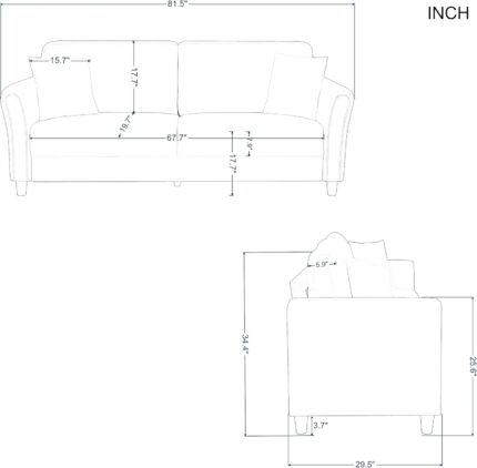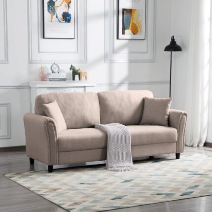 81.5″ Modern Minimalist Sofa with Solid Wood Frame, Sturdy and Durable, Suitable for Living Room, Office, etc.Light Brown