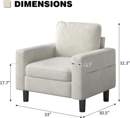 Accent Living Room Chair – Modern Upholstered Armchair, Reading Side Chair, Single Sofa for Bedroom, Apartment, Studio, Office, Waiting Room (White, Single)