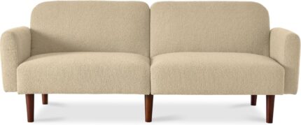 77″ Mid Century Modern Boucle Loveseat Sofa, Couch, Convertible Sofa Sleeper Bed w/Real Wood, Removable Armrest – Oatmeal