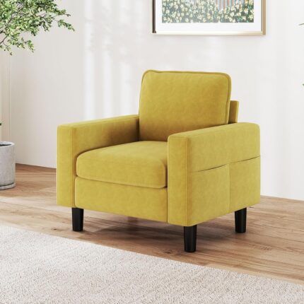 Accent Living Room Chair – Modern Upholstered Armchair, Reading Side Chair, Single Sofa for Bedroom, Apartment, Studio, Office, Waiting Room (Yellow, Single)