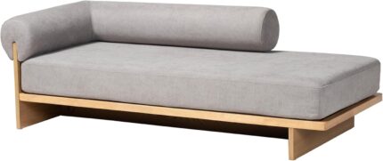 Left-Arm Chaise Lounge with Solid Wood Base – Minimalist Sofa with Grey Fabric Cushion and Bolster Pillow for Living Room or Bedroom Decor