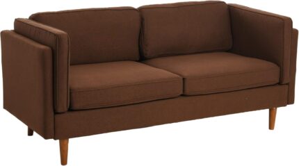 Faux Leather Sofa, Mid Century Modern Couch with Rolled Arm & Nailhead Trim for Living Room, Office – Retro Brown