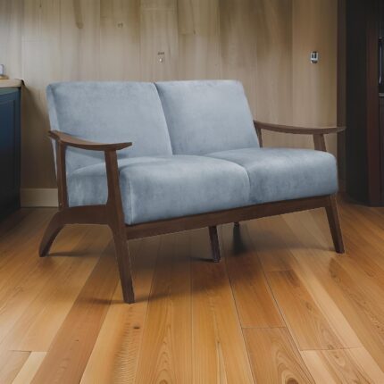 Inch Loveseat- Soft Blue Gray Velvet- Walnut Brown Solid Wood
